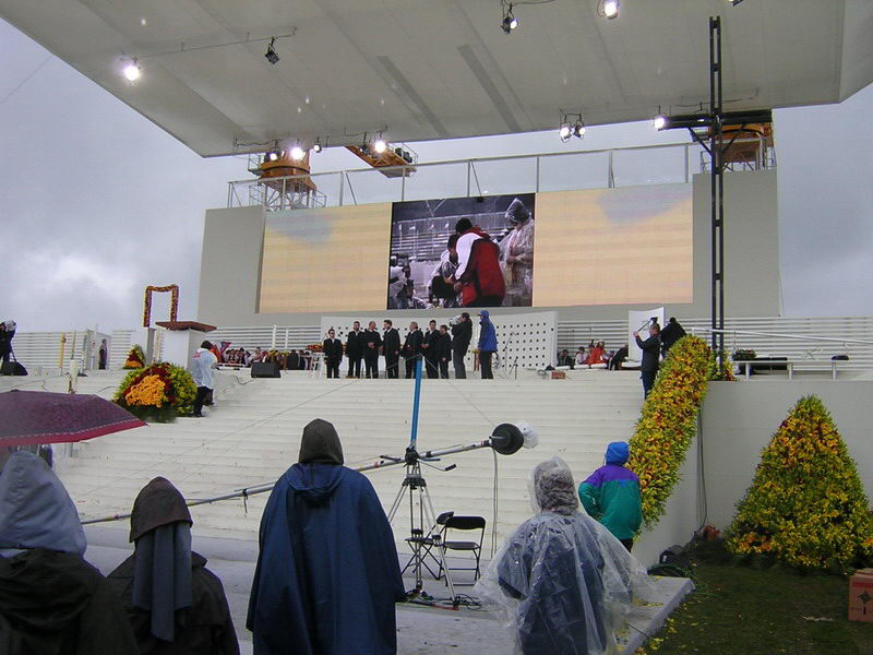 Po raním osvěžení a probuzení zpěvem začali přednášky a svědectví. Počital jsem, že dlouho nevydržím. Ale přednášející byli parádní řečníci a uvedli Vás do až skoro tranzu. A přednášeli i herci z Ameriky, drogově závislý, kněží a další..Přednášel tam i kněz z Mexika. Vím, že nebyl na obloze ani mráček a všichni jsme byli unavení horkem jak na nás pařilo to přímé slunko. A on řekl, že vyleze ven za náma (přednášející byli schovaní pod střechou toho amfiteátru) na to ostré slunko, že se chce cítit jako my všichni. A věř, že do cca deseti minut nad náma všema byl mrak! z nebe, na kterém se od ráno nedal nalézt ani jeden mráček.